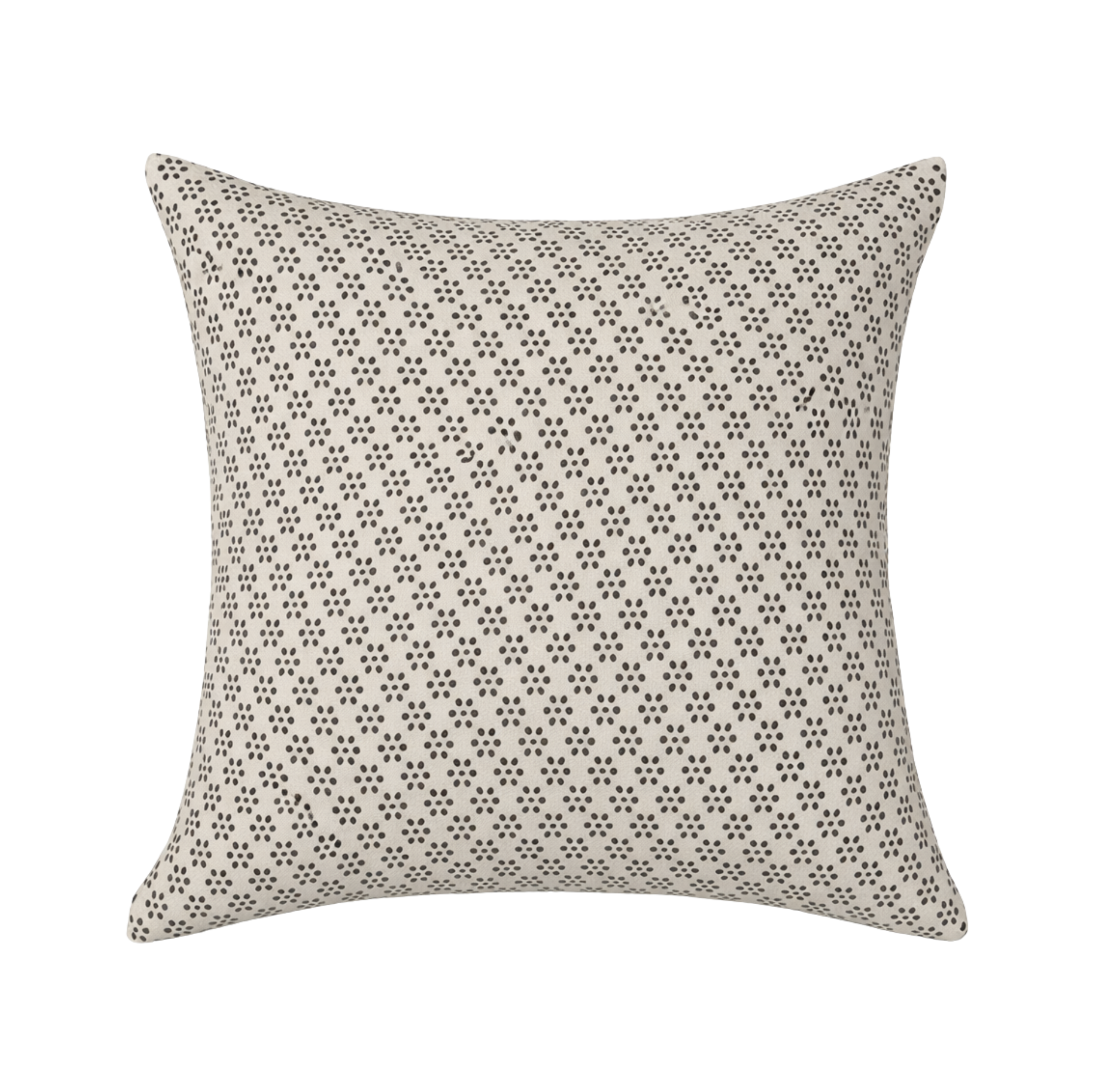 The Callista throw pillow is made of linen and adorned with a delicate dotted block-print, creating a timeless, neutral accent that layers effortlessly into both modern and relaxed interiors. Each pillow cover is handprinted by skilled artisans in India using a traditional wood block technique—designs are carved into individual blocks and hand-pressed to create a layered and detailed motif. Because each pillow is hand printed, expect natural variations in color and motif placement. Luxury Down or EcoSmart insert included.